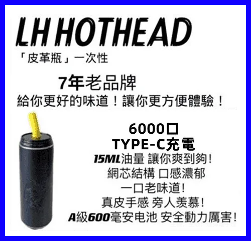 LH HOTHEAD皮革瓶電子煙可充電一次性拋棄式6000口