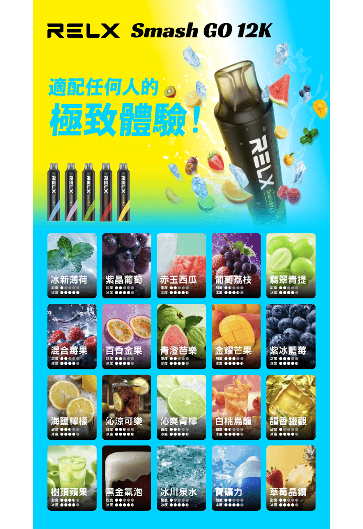 / RELX悅刻電子煙一次性抛棄式Smash Go 12000口【10種風味】